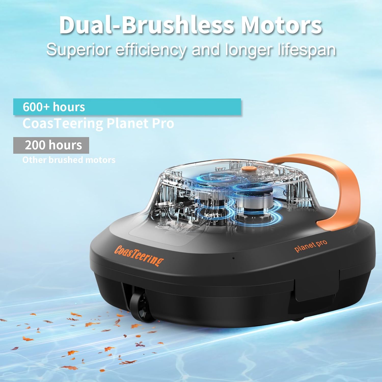 Le coasteering planet pro équipé de deux moteurs sans balais offrant une durée de vie trois fois plus longue que les moteurs traditionnels à balais. Ce robot est conçu pour une efficacité maximale, avec deux ports d’aspiration puissants capables de nettoyer 140 litres d’eau par heure. Grâce à sa vitesse de chargement rapide de seulement 2,5 heures, il est prêt à l’emploi en un rien de temps, et sa batterie de 120 minutes assure un nettoyage complet de votre piscine. Doté d’un stationnement automatique et de LED qui indiquent le niveau de la batterie, ce robot est aussi intelligent qu’efficace. Son utilisation est d’une simplicité déconcertante : un simple clic suffit pour activer le nettoyage automatique. Facile à manipuler grâce au crochet fourni et à nettoyer en rinçant simplement le filtre, ce robot est l’allié parfait pour maintenir votre piscine impeccable avec un minimum d’effort.
