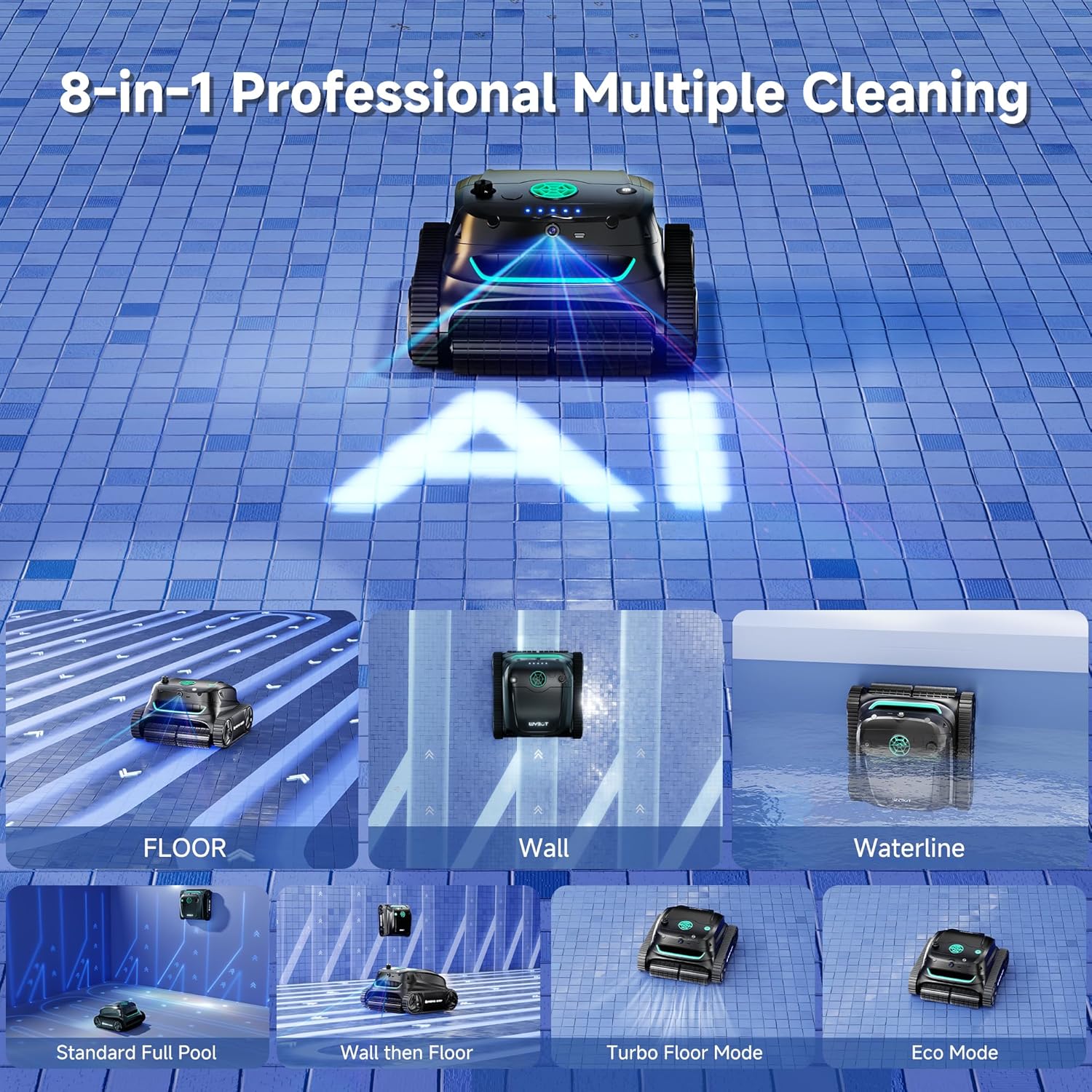 Face à ces enjeux, le WYBOT S2 Solar Vision s’impose comme le nettoyeur le plus autonome du marché. Contrairement aux modèles classiques, il automatise chaque étape, de la détection des saletés à sa propre recharge.